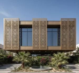 Metal facades are highly versatile, serving a wide range of applications in the UAE’s residential, commercial, and public sectors. In residential settings, they enhance the exteriors of villas and townhouses, providing a modern aesthetic while improving energy efficiency. Homeowners in Dubai and Sharjah use metal facades to create sleek, contemporary exteriors or incorporate cnc design metal facade patterns inspired by Arabic motifs for cultural resonance.
